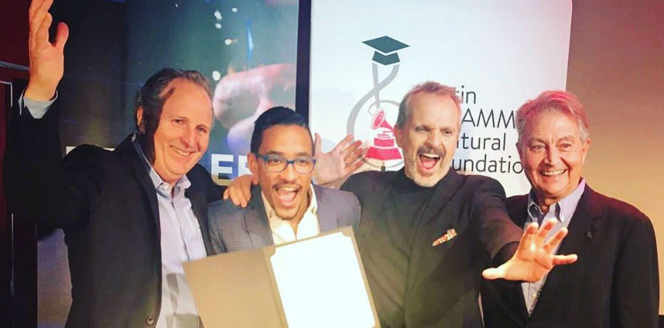 Miguel Bosé a través de la Fundación Cultural Latin Grammy le otorgó a Ernesto Núñez, de 22 años de edad, con una beca de 200 mil dólares para asistir a la Escuela de Música de Berklee, en Boston, donde cursará su carrera por cuatro años.