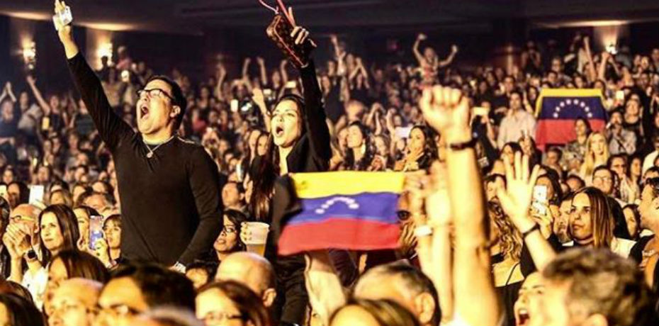 se presentó en un conciero en Miami abrazado a la bandera venezolana, en un simbólico y conmovedor homenaje este pueblo, que a diario sale a las calles a pedir libertad, aun siendo reprimidos por el gobierno de Nicolás Maduro. En el concierto había varios colegas como se emocionaron al sentir el apoyo del cantante Miguel Bosé. Sin embargo, el propio Bosé compartió en su cuenta de Instagram la imagen del preciso momento en que y le dedicó estas palabras: “La Paz es un DERECHO del que todas las personas, los grupos y los pueblos somos titulares. La música es una herramienta para expresarnos libremente. #PazEnElMundo”. entregó la la bandera a un fanático, dentro del recinto.
