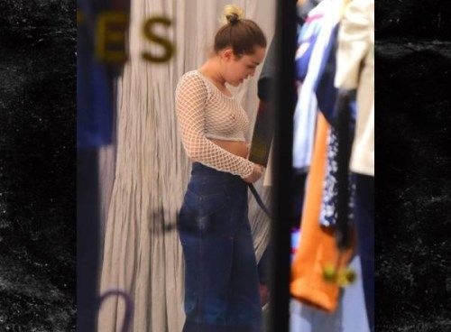 Miley se puso un top calado blanco, que mostraba sin sensura sus pezones. Y sin importarle que había fotógrafos, la cantante posó frente al espejo del local, mientras se probaba un jean y el top "hot".