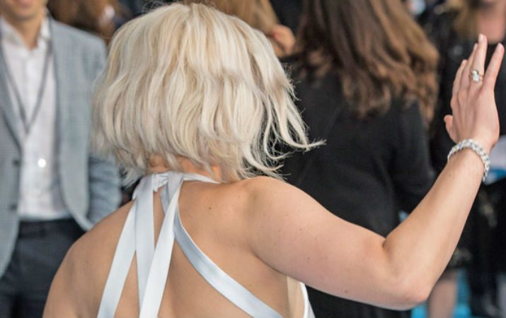 En esta oportunidad, Lawrence iba caminando y saludando como toda una princesa de cabello platinado y con un sexy vestido blanco, cuando de pronto, ¡boom!, un nuevo tropiezo para la lista.