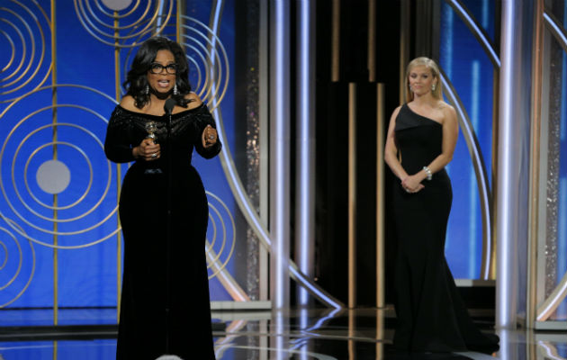 La actriz recibió el premio a la trayectoria Cecil B. DeMille en la ceremonia del domingo y no pasó mucho tiempo antes de que en Twitter surgiera el hashtag #Oprah2020.