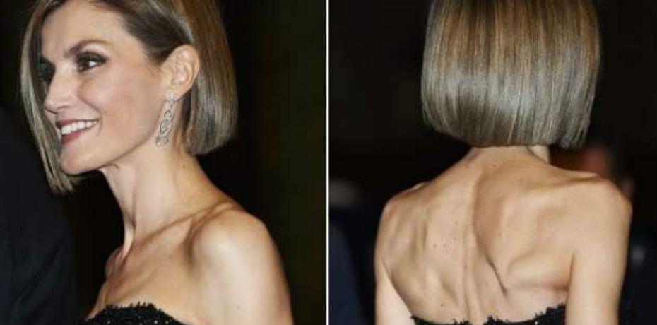 Durante la gala de la entrega de los premios Woman, celebrada en el Casino de Madrid, la reina lució un vestido negro strapelss que mostró sus omóplatos salientes, lo que fue el tema de los comentarios esa noche.