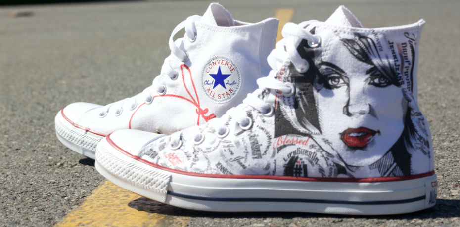 Los tenis son de la marca Converse y tienen plasmado el rostro de la cantante de un costado y del otro su firma..