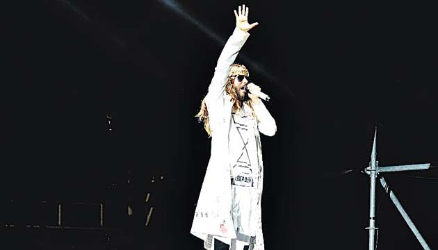 Jared sorprendió con su indumentaria al estilo bohemio y compartió con el público. Cantó por más de una hora todos los éxitos del grupo.