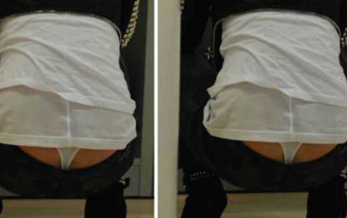 Pero cuando se agachó para mirar de cerca un producto en una Apple Store en Milán, el pantalón de Paris se deslizó dejando a vista su pequeña tanga blanca, para deleite de los fotógrafos.