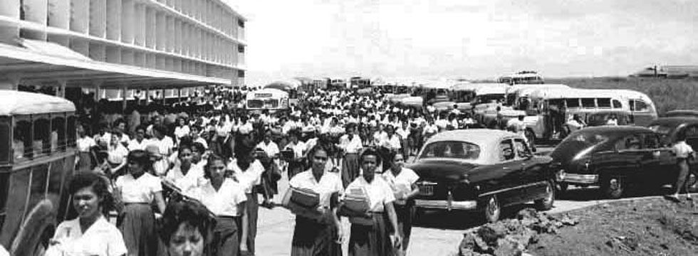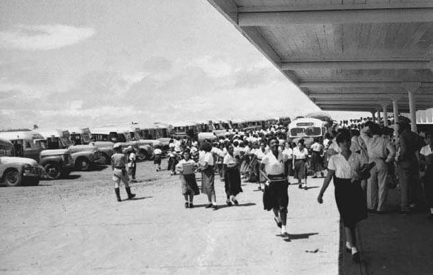 Adivina de qué año se inauguró este liceo. La ropa de las damas te dará una pista de la década.