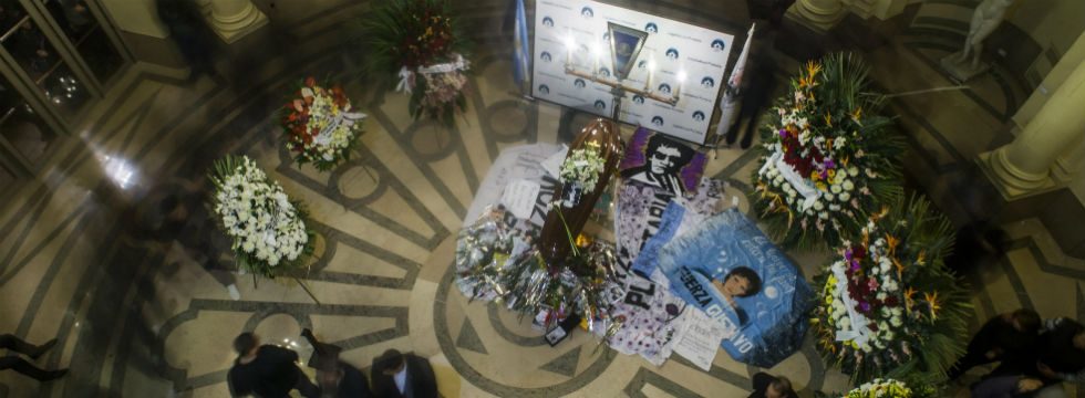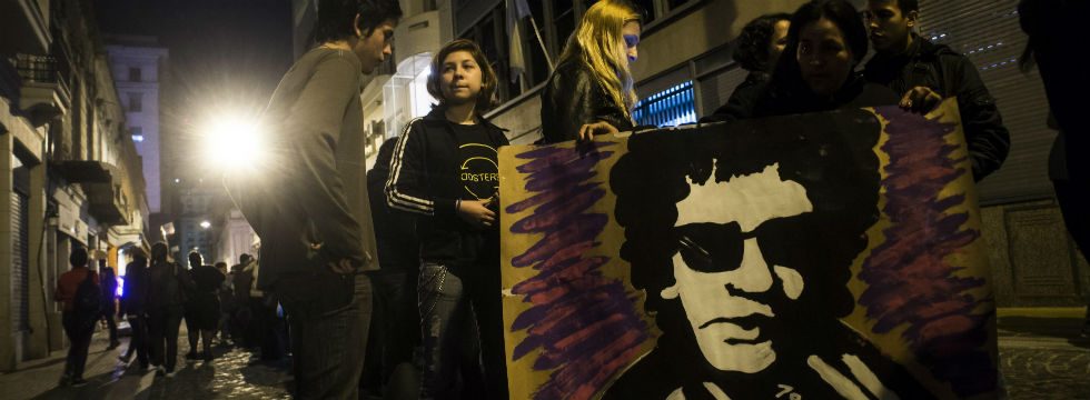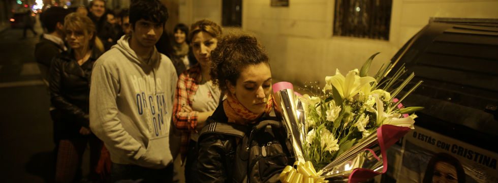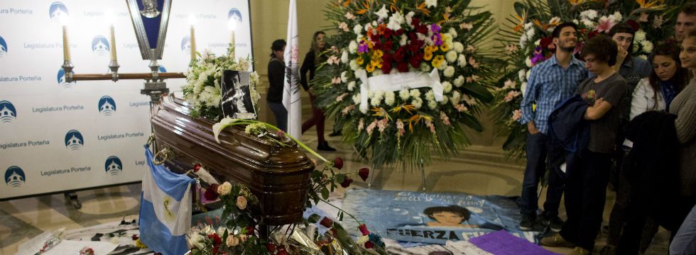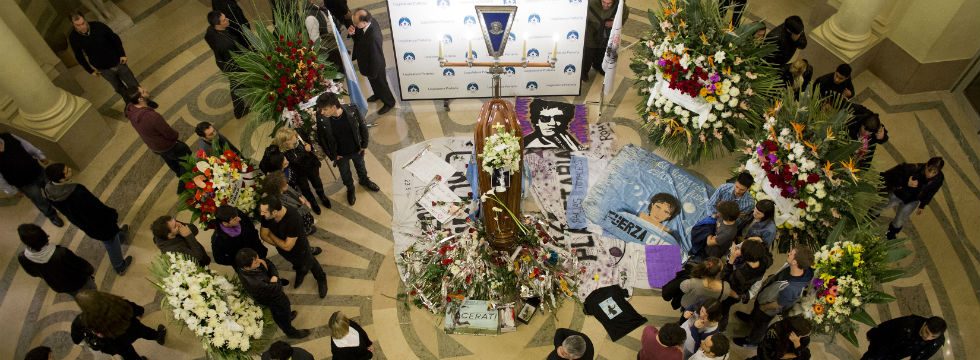 Seguidores del músico argentino Gustavo Cerati tras visitar el féretro donde descansan sus restos en la Legislatura de la Ciudad de Buenos Aires, lugar donde velan al cantante en Buenos Aires, Argentina.