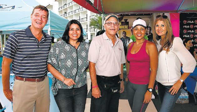 Diversión y competencia se vivió en la “Beach Party Night Race” que se celebró en Playa Bonita Intercontinental. Más de 400 corredores y familiares y amigos asistieron a este novedoso evento de 5K que fue ganado por el keniano Joel Kiptanui con un tiempo de 15.22. En la imagen: Erik Van Deer Kaaij, Gamil Singh, Gregorio “Beby” Miró, Dominique Buitrago y Leslie Chacón. AC218972