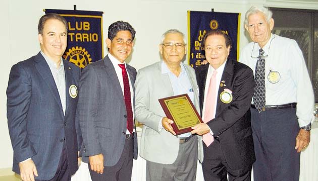 En días pasados, el Club Rotario de Panamá hizo un reconocimiento al reconocido director de orquesta maestro James Brooks B. y lo nombró Socio Honorario de este club por todo el aporte brindado a programas y actividades rotarias, especialmente culturales. Presentes en el acto de entrega: Guillermo Villarreal, los rotarios Vicente Alberto Pascual L., Marco Gateño Z., y J. Thomas Ford.