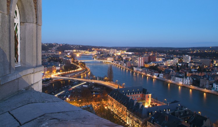 1. Ciudad de Namur, capital de la Región Valona, ubicada en la confluencia de los ríos Sambre y Mosa.
