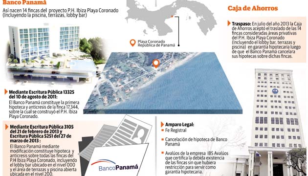 Banco Panamá, una entidad bancaria privada, financió en el año 2011 la construcción del P. H. Ibiza Playa Coronado y dos años más tarde, reconoció mediante una hipoteca y anticresis todas las fincas de ese proyecto, incluyendo áreas privativas como las áreas de terrazas -piscina y el lobby -bar.