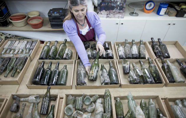 Personal de la Autoridad Israelí de Antigüedades excavaba herramientas de pedernal de 250.000 años de antigüedad cuando los arqueólogos se encontraron cientos de botellas de licor cerca de un edificio donde estuvieron acuartelados en 1917 los soldados británicos.