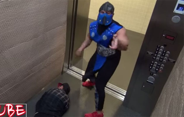 ¿Cómo reaccionarías si alguien vestido como ninja hace que te va a atacar en el elevador?