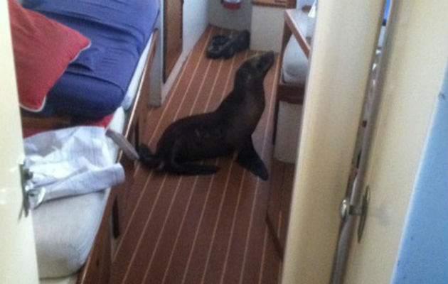 Un extraño polizón sorprendió a un hombre en su yate en San Diego: un cachorro de león marino que decidió ingresar a la embarcación, despertando al dueño con sus ronquidos. El Día de las Madres no habrá sido uno muy placentero para el cachorro, pero sí muy sorprendente. Michael Duffy, de 48 años, dijo que estaba a bordo del "Elixir'' en el Club de Yates de San Diego, cuando los sonidos del animal lo despertaron a las 2:30 a.m. Pensó que era un amigo, que llegaba de una noche de fiesta, pero no encontró a nadie. Horas después, cuando el día comenzaba a iluminarse, volvió a escuchar ese raro sonido. Fue entonces que vio al cachorro de 16 kilogramos (35 libras) en una de las camas, enroscado como un perro y encima de su ropa. ``Era un pequeño, y parecía algo sorprendido, pero estaba adormilado'', dijo Duffy, suponiendo que era un macho. ``Luego me escuchó acercarme, así que me volteó a ver como cuando el perro está dormido y lo quieres despertar pero él quiere seguir dormido''. Duffy señaló que posiblemente el cachorro buscaba a su madre, pero lo encontró a él. El capitán tomó su celular y le tomó una foto, pero el cachorro ya había brincado al suelo del camarote. ``Tienes que irte amigo, ve... vete, vete, vete'', dijo Duffy mientras grababa un video, mientras guiaba con suavidad al león marino de regreso por las escaleras y hacia el mar.