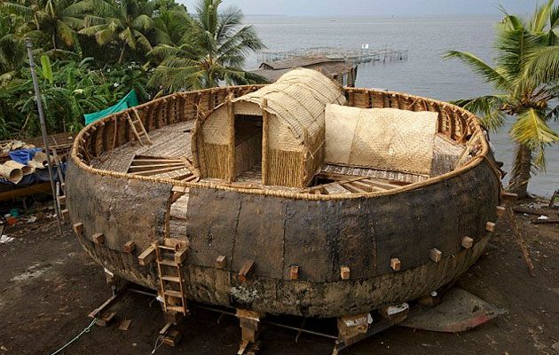 El equipo del arqueólogo, Dr Irving Finkel que trabaja en el Museo Británico, tardó cuatro meses en construir el arca de Noé (en dimensiones más pequeñas) en Kerala en el sureste de India.