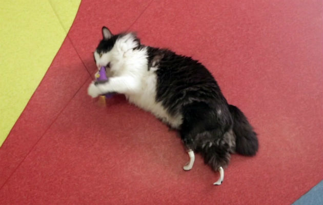 Un gato pudo volver a caminar gracias a un par de patas traseras protésicas, con lo que se volvió el primer "gato biónico" de Bulgaria.