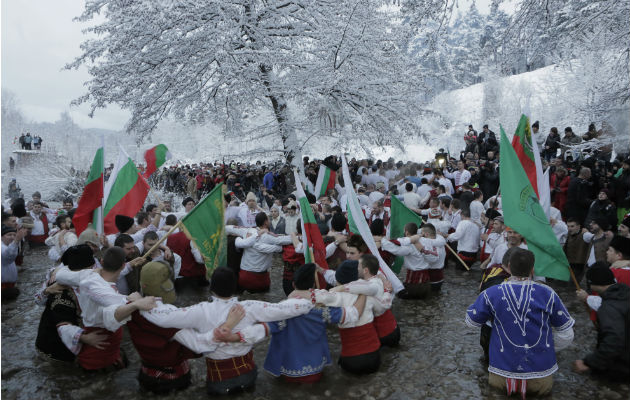 Más de un centenar de búlgaros se lanzaron hoy a las heladas aguas de un río de la localidad de Kalofer para celebrar la Epifanía en un festejo con danzas folclóricas y grandes cantidades de aguardiente caliente.