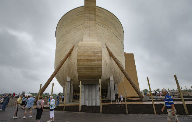 Un parque temático con costo de $100 millones que contiene un Arca de Noé de 155 metros de largo (510 pies) —que fue construida por cristianos que dicen que la historia bíblica realmente ocurrió— está listo para ser inaugurado esta semana en Kentucky. Desde su anuncio en 2010, el proyecto del arca ha irritado a opositores que dicen que la atracción será en detrimento de la educación científica y que no debió haber recibido incentivos fiscales por parte del estado. "Creo que éste va a ser uno de los mayores aportes cristianos de esta era en la Historia", dijo Ken Ham, presidente de Answers in Genesis (Respuestas en el Génesis), el ministerio que construyó la arca. Ham dijo que la enorme arca, basada en la leyenda de un hombre (Noé) que recibió de Dios una advertencia sobre el fin del mundo por medio de una inundación masiva, representará una prueba de que la historia de la Biblia es verdadera. El grupo invitó el martes a medios de prensa y a miles de partidarios a una preinauguración, el primer vistazo dentro de la estructura construida mayormente con madera. "Va a venir gente de todo el mundo", dijo Ham a miles de personas frente al arca. El arca será abierta al público el jueves y el grupo de Ham ha calculado que atraerá dos millones de visitantes en su primer año, equiparándose con atracciones muy populares en la cercana ciudad de Cincinnati. El grupo dijo que el arca fue construida con base en dimensiones mencionadas en la Biblia. En su interior hay exhibiciones tipo museográficas sobre la familia de Noé, junto con filas de jaulas con réplicas de animales, incluidos dinosaurios. El grupo cree que Dios creó todo hace aproximadamente 6,000 años —al hombre, dinosaurios, todo_, así que los dinosaurios aún estarían por ahí en la época de la inundación que vivió Noé. Los científicos dicen que los dinosaurios desaparecieron aproximadamente 65 millones de años antes de la aparición del hombre. Un opositor al arca, quien encabeza un grupo ateo llamado Tri-State Freethinkers dijo que el parque temático religioso será diferente a cualquier otro en la nación debido a su rechazo a la ciencia. "Básicamente, este bote es una iglesia criando niños científicamente analfabetas a quienes se les miente respecto a la ciencia", enfatizó Jim Helton, quien vive a casi media hora en auto del arca.