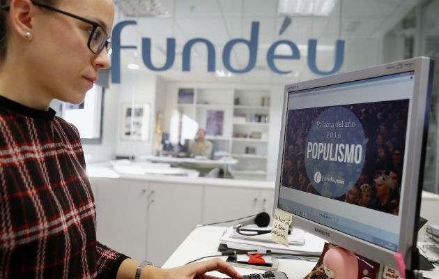 "Populismo" es la palabra del año 2016 para la Fundación del Español Urgente, promovida por la Agencia EFE y BBVA. Por cuarto año consecutivo, la Fundéu BBVA dio hoy a conocer su palabra del año, elegida entre aquellos términos que han marcado la actualidad informativa de 2016 y tienen, además, interés desde el punto de vista lingüístico. Tras elegir "escrache" en 2013, "selfi" en 2014 y "refugiado" en 2015, el equipo de la Fundación ha optado en esta ocasión por "populismo", una palabra originalmente neutra, pero que se ha ido cargando de connotaciones hasta convertirse en un arma en el debate político. "Parecía claro que en un año tan político como este, con acontecimientos de importancia global como el 'brexit', la victoria electoral de Donald Trump y los diferentes procesos electorales y plebiscitarios en América y España, la palabra del año de Fundéu tenía que venir de ese ámbito", explica el coordinador general de la Fundación, Javier Lascuráin. De hecho, varias de las doce candidatas que se anunciaron hace unos días estaban relacionadas con la política: "sorpaso","abstenciocracia", "posverdad" y la ganadora, "populismo". "Finalmente nos hemos decidido por 'populismo', que ya lleva algún tiempo en el centro del debate político y que desde el punto de vista lingüístico está viviendo un proceso de ampliación y cambio de significado, cargándose de connotaciones a menudo negativas", señala Lascuráin. Esa evolución, "que no es nueva pero que posiblemente se ha acelerado en los últimos tiempos", parte de un uso neutro de las palabras "populismo" y "populista" que tuvieron durante un tiempo significados próximos a "popular". "A lo largo de los últimos meses hemos recibido muchas consultas sobre el significado real de 'populismo', ya que parece evidente que el uso que se le da en los medios y en el debate político va más allá de la simple defensa de los intereses populares que mencionan, con distintos matices, la mayoría de los diccionarios", añade. "Ese es uno de sus sentidos, aunque seguramente el que menos se use en la actualidad. También hay quienes prefieren definirlo como la tendencia política que pretende devolver el poder a las masas populares frente a las élites". No obstante, en los medios de comunicación parece estar imponiéndose una visión negativa del término, que suele aplicarse "a políticos de todas las ideologías pero que tienen en común la apelación emotiva al ciudadano y la oferta de soluciones simples a problemas complejos", explica el coordinador de la Fundéu BBVA. El interés de esa evolución, de ese proceso que algunos lingüistas denominan relexicalización y que "está ocurriendo cada día ante nuestros ojos en los medios de comunicación", es lo que ha propiciado la elección de "populismo". Antes de dar a conocer la decisión final, la Fundación publicó una lista de doce palabras finalistas en la que, además de los términos del ámbito de la política, figuraban otras como "youtubero", la adaptación propuesta del anglicismo "youtuber", y "ningufonear", una alternativa al inglés "phubbing" que se usa para definir la actitud de quien solo presta atención a su dispositivo móvil mientras desatiende a quien tiene delante. Otras de las presentes en la lista comparten el hecho de que sus significados se han ido ampliando a través del uso que hacen de ellas los hablantes, como "bizarro", "cuñadismo" y "vendehúmos".Completaban la lista términos como "LGTBfobia", "papilomavirus" y "videoarbitraje".