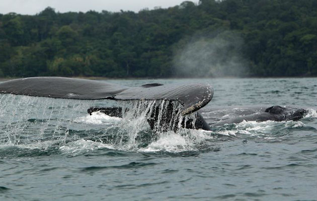 Ballenas jorobadas en el mar frente a la población de Nuquí, en el departamento de Chocó