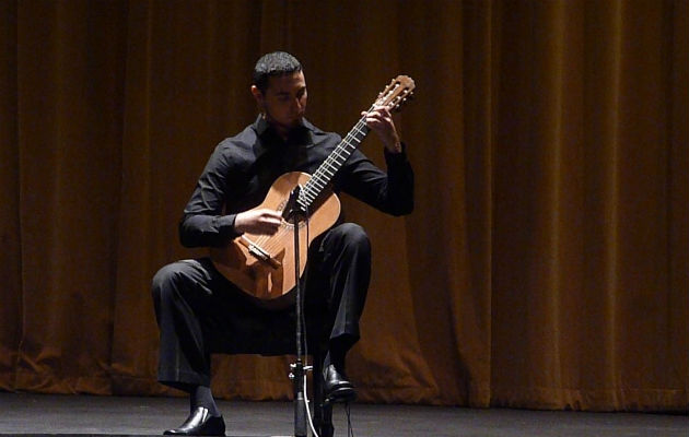 Con muy buen pie empezó el XI Encuentro Internacional de guitarra Panamá 2014, en el Teatro Nacional añoche. Antes, allí mismo, hubo clases maestras (en la mañana, desde las 9) y conciertos didácticos (de 5:30p.m. a 6:30 p.m.). Estos últimos son gratuitos y pueden preguntar todo lo que quieran sobre el arte de tocar guitarra a los artistas que los ofrecen. En la velada inaugural, que se denominó "Fandango, tambor y danza", el primero en demostrar sus habilidades con la guitarra fue el panameño Alberto Abril, quien estudia una maestría en ese instrumento en Estados Unidos. Él deleitó con Sonatina. Op.52 No. 1 (I. Allegretto), de LennoxBerkeley, luego, con seis valses poéticos de Enrique Granados. Posteriormente, con un arreglo del panameño Emiliano Pardo-Tristán, titulado "El tambor de la agonía", composición que hizo en honor a los muertos producto de la invasión de las tropas de Estados Unidos a Panamá en 1989. A Abril le siguió en el escenario el quinteto de Edwin Ehrman, de Panamá, conformado por el propio Ehrman (en la guitarra), Oryana Racines (violín), Francisco Villarreal (violín), Anel González (viola9 y Carlos Alvarado (violonchelo). Después del intermedio el renonocido guitarrista cubano Rafael Padrón fue el que capturó la atención de la selecta concurrencia. Con maestría fue sacando notas a su amada guitarra y compañera de momentos inolvidables. Inolvidables como los que hizo pasar a la concurrencia que le regaló aplausos y expresiones de satisfacción. No se pierdan hoy martes en la noche, desde las ocho (8:00 p.m.) los conciertos de Sthephen Mattingly (Estados Unidos) e Isaac Bustos (Nicaragua) en "Muñeiras, Guajiras y Diablos". Mañana miércoles, a la misma hora, el turno será para el Beijing Guitar Duo (China), el más famoso del mundo. Foto: Rosalina Orocú Mojica