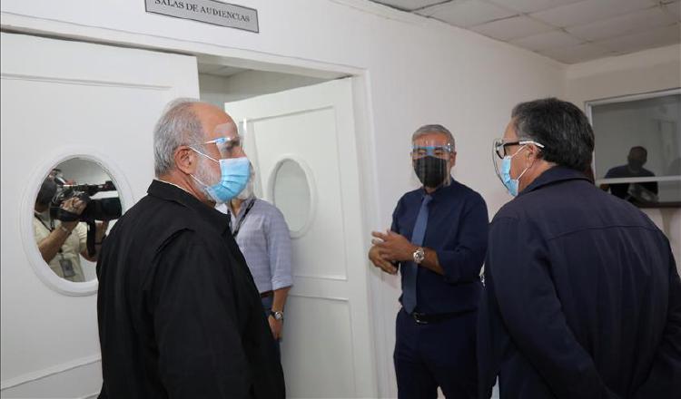 El presidente de la Corte observó los trabajos de modernización de las salas de audiencia de lo civil. Foto de cortesía