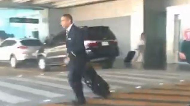 El tripulante de Copa Airlines fue grabado en video a su salida del Aeropuerto Internacional de Tocumen.