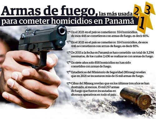 Armas de fuego figuran en más del 75% de los homicidios registrados en los últimos siete años en Panamá