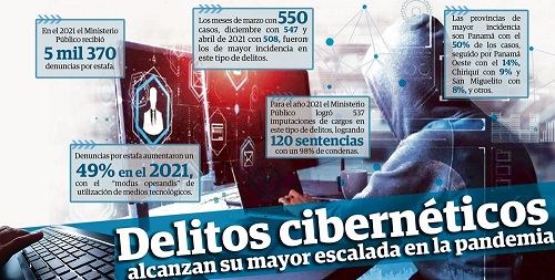 De acuerdo con cifras del Ministerio Público en Panamá, los delitos informáticos que más se han dado son la estafa, los cuales aumentaron en un 49%, con el "modus operandi" del uso de los medios informáticos.