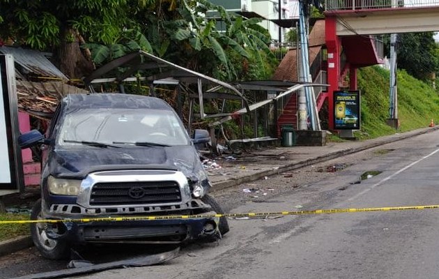 El conductor del vehículo, tipo pick up, perdió el control y se estrelló contra la parada de buses que está ubicada a la altura de Villa Lorena.