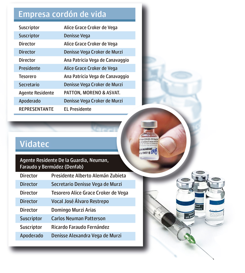 Sin embargo, de acuerdo con el diario La Prensa, en el centro de vacunación clandestino, no solo estaban presentes personas uniformadas con los logos de Vidatec y Cordón de Vida, sino que también estuvo Denisse Vega, quien registra como directiva en ambas sociedades.