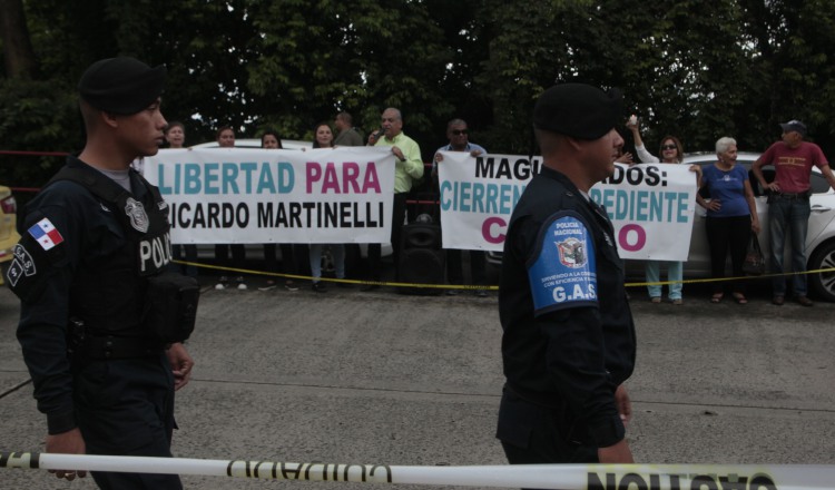 Simpatizantes de Ricardo Martinelli lo apoyaron ayer en los predios de la Corte Suprema de Justicia. Víctor Arosemena