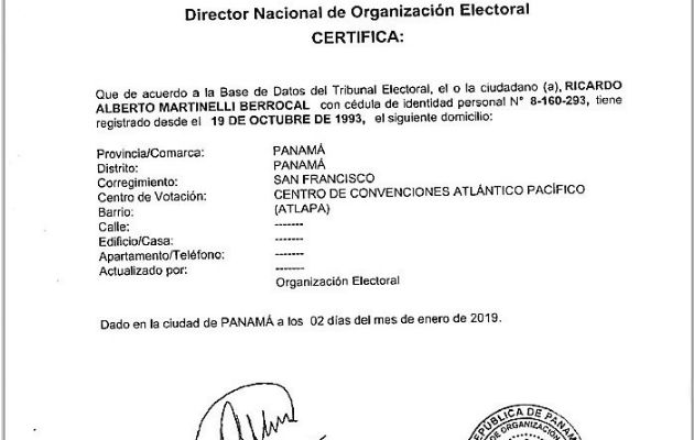 "En el caso de él no fue impugnada su postulación, ni su residencia tampoco, porque hay un tiempo para impugnar y ya venció el periodo. Una vez vencido ese periodo está en firme la candidatura", planteó el presidente de la corporación electoral, Heriberto Araúz, respaldado por el magistrado Eduardo Valdés Escoffery, en declaraciones al programa Radar, que se transmite por TVN.