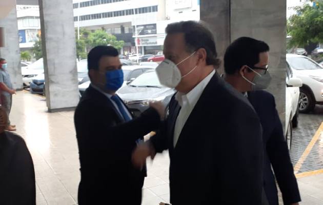 El exmandatario llegó al edificio Avesa a eso de las 8:30 de la mañana acompañado de sus abogados Erasmo Muñoz y Orison Cogley.