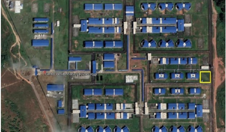 Imagen satelital de la cárcel La Nueva Joya. El recuadro en amarillo, ubicado a la derecha es el sitio donde se construirá el pabellón. Foto: Internet