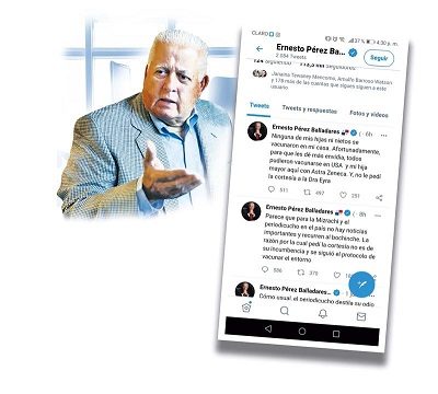 "Ninguna de mis hijas ni nietos se vacunaron en mi casa. Afortunadamente, para que les dé más envidia, todos pudieron vacunarse en USA y mi hija mayor aquí con AstraZeneca. Y, no le pedí la cortesía a la Dra Eyra", manifestó en Twitter.
