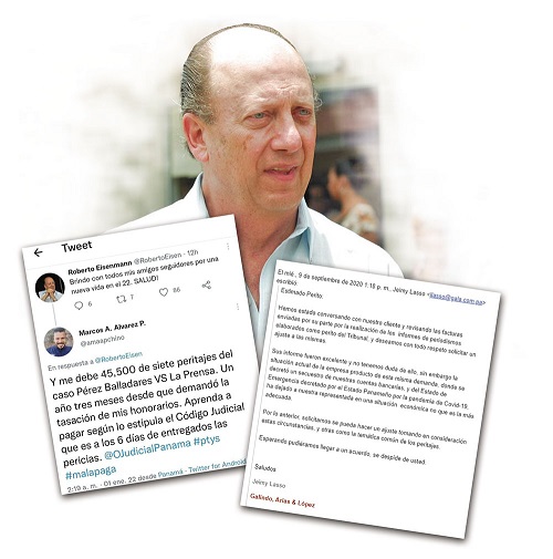 El perito del Juzgado Decimoquinto, Marcos Aurelio Álvarez, le reclama al empresario Roberto Eisenmann, el pago de 45,500 dólares por sus servicios dentro de la demanda millonaria interpuesta por el expresidente Ernesto Pérez Balladares contra el diario La Prensa.