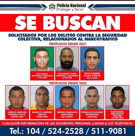 También aparecen Carlos Manuel Thomas Calle, Marcos Jiménez García, Neider Pandales Saavedra, Everaldo Álvarez Rodríguez, Nathaniel Archibold Taylor, estos últimos cinco están prófugos desde el año 2022.
