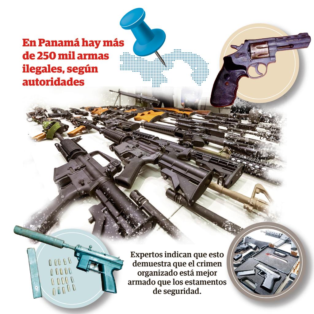 Tránsito de armasPara la directora del Instituto de Criminología de la Universidad de Panamá (Icrup), Bélgica Bernal, muchas de esas armas ilegales que hace mención el ministro Pino no es que están siendo todas utilizadas en el país, sino que muchas de ellas sirven como el medio para la compra de sustancias ilícitas, entre ellas cocaína, marihuana, etc .