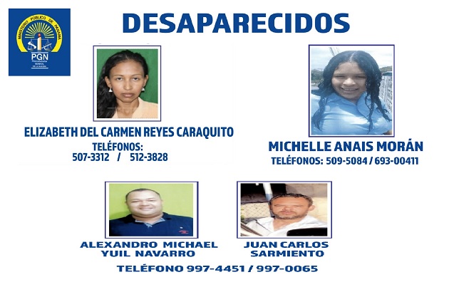 De acuerdo con los informes del Ministerio Público del pasado mes, las dos mujeres desaparecidas son: Elizabeth Del Carmen Reyes Caraquito y Michelle Anais Morán.