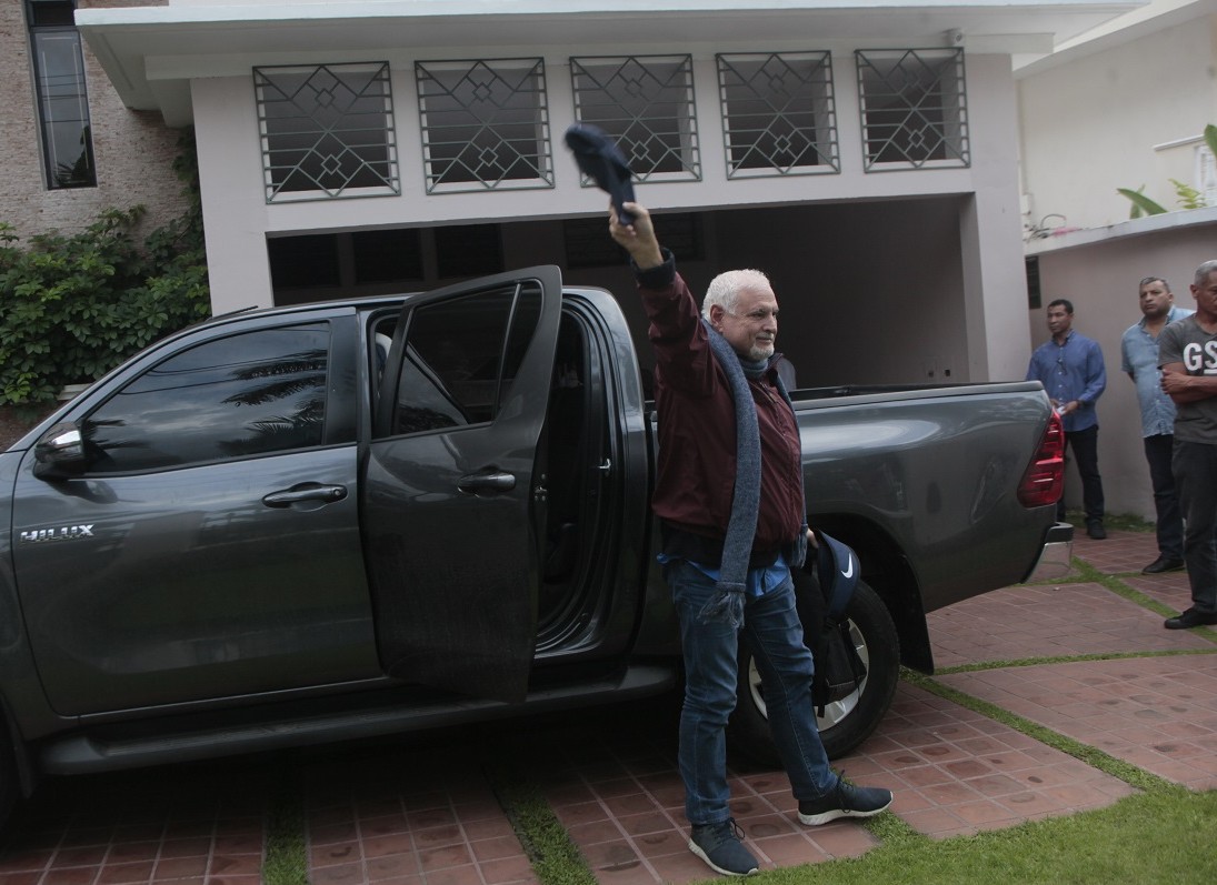 A su llegada a la residencia, Ricardo Martinelli se quitó la gorra con su mano derecha y saludó por varios segundos a los periodistas que habían hecho guardia en la entrada de su casa.
