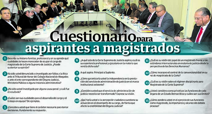 15 preguntas deberán enfrentar los aspirantes a magistrados de la Corte Suprema de Justicia (CSJ), quienes serán atendidos en orden de inscripción.