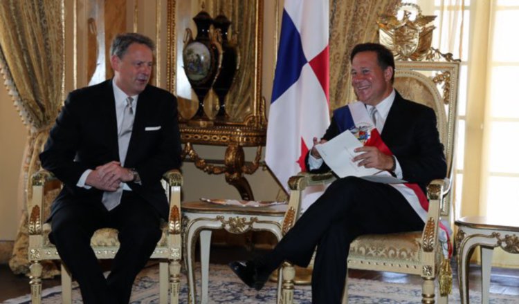John D. Feeley (izq.) y Juan Carlos Varela en la Presidencia.