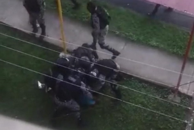 Al estar boca abajo, el vendedor de pan recibió por lo menos dos patadas por parte de uno de los uniformados. Luego, se escucha en el video cuando utilizan la pistola eléctrica para someter al detenido.
