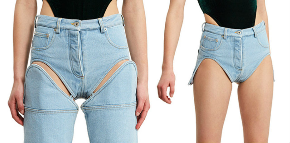 , últimamente han sido la revolución en muchos diseñadores que ha dejado todos con la imaginación muy alterada. Estamos hablando de que se ha presentado como una nueva tendencia para esta temporada. La nueva creatividad no tiene límites y la nueva moda de los 'jeans' pero estos se puede quitar por pedazos. Como si el dril de algodón no lo tuviera lo suficientemente duro, ahora tenemos jeans desmontables. Están a la altura de todas tus expectativas más salvajes. Por lo tanto, el estilos de los pantalones cortos desmontables que son básicamente un pañal de mezclilla con cremallera y piernas, se han unido al desfile de lo terrible que incluye pantalones de plástico transparente, pantalones llenos de barro falso y enteritos para hombres. Por el lado bueno, son pantalones de transición agradable para alguien que no tiene trasero ni chaparreras. Estos 'jeans' son valorados por 550 dólares isnpirado en un estilo deconstruido, también pueden llevar un estilos de sostenedor con aros y anillos en la parte de abajo del trasero. Está nueva prenda que está de moda, lo ha llevado varias reconocidas de la cara de la farándula como Rihanna, Kendall Jenner, entre otras.