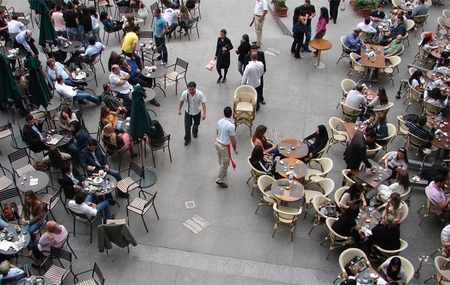 Si el mesero o mesera se agacha para ponerse a tu nivel, ojo a ojo, pone en equilibrio cada cual. Seguro es más difícil no darle una propina buena a alguien que hasta recuerdas su cara.