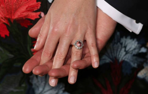 Se trata de un un zafiro padparadscha rodeado de diamantes. El padparadscha es uno de los zafiros más raros y también de los más caros, pues no es habitual en la naturaleza. Los pocos que se encuentran están en Sri Lanka, Madagascar o Tanzania. La alianza guarda parecido con la que en su día el príncipe Andrés le entregó a Sarah Ferguson; sin embargo la pieza central del de Fergie era un rubí. Asimismo, en la prensa británica también han destacado su semejanza con el de la duquesa de Cambridge, que también tiene un zafiro -en ese caso azul- rodeado de diamantes.