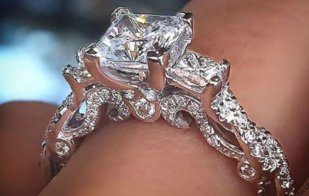 En el 2017 el anillo más compartido en la red social de Pinterest enloquecieron con el anillo de compromiso de Raymond Lee Jewelers y se trata de un sofisticado diamante de 1.3 quilates en corte princesa, rodeado de diminutos diamantes.