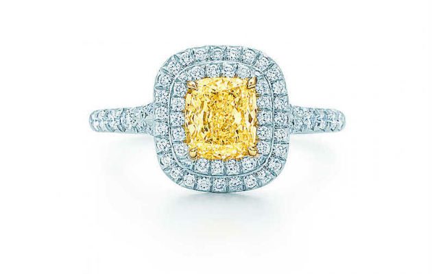 Rara vez se usan los diamantes de colores en anillos de compromiso, pero este año, el color amarillo viene con todo.