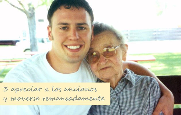 3 Moverse y vivir la vida remansadamente. En la juventud uno corre, luego uno se mueve más lento y más lento. "La capacidad de moverse con benevolencia y humildad...los ancianos tienen esa sabiduría, son la memoria de un pueblo. Y un pueblo que no cuida a sus ancianos no tiene futuro".